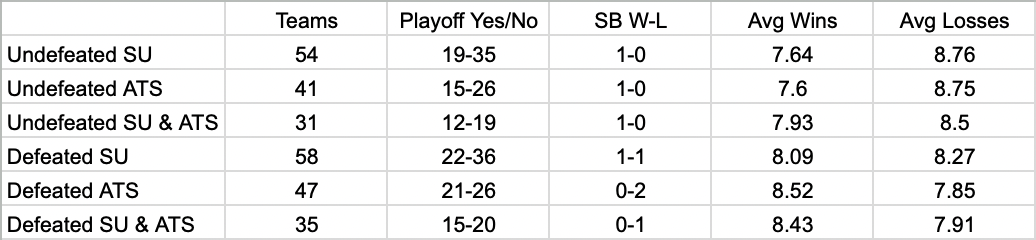 Here is a look at how undefeated and defeated preseason teams have performed in the regular season over the last 20 years: